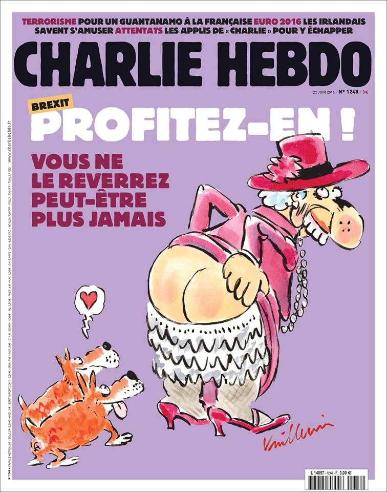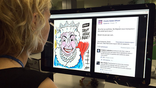 Французский "сатирический" журнал Charlie Hebdo опубликовал карикатуры на британский референдум по выходу из ЕС.