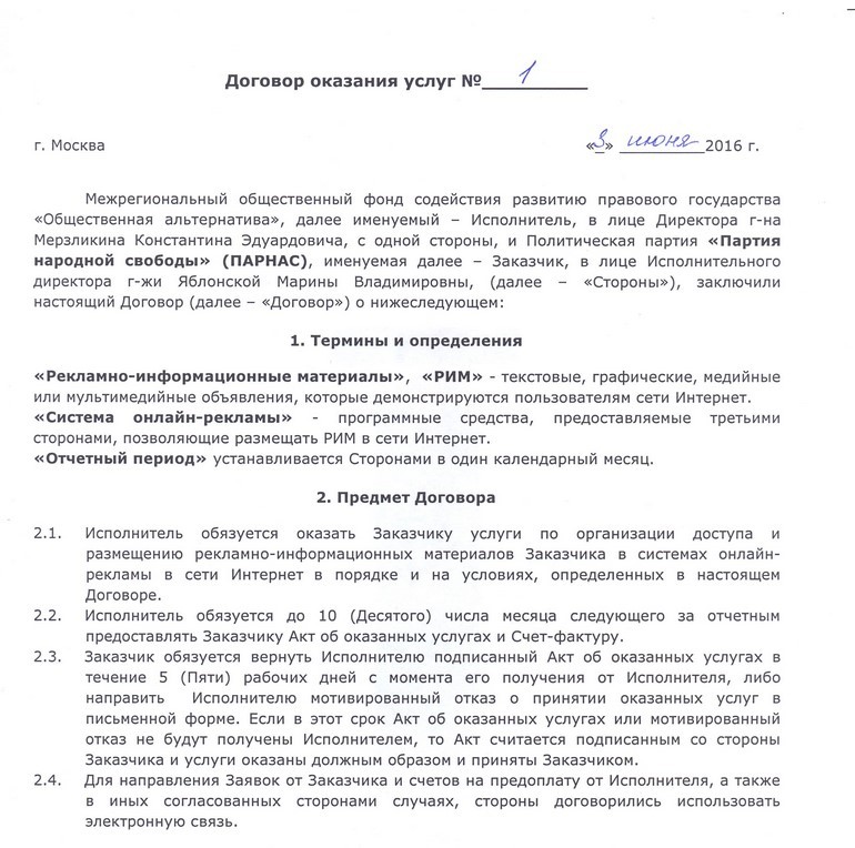 Вот конкретный пример наглейшей растраты денег.ПАРНАСу нужна реклама в интернете. Что делает ПАРНАС? Заключает договор с исполнителем? Нет. Переводит деньги своему карманному фонду.