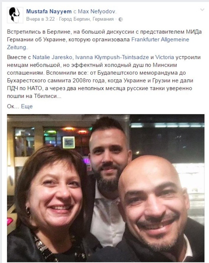 По словам Наема, украинцы, приглашенные немецким изданием Frankfurter Allgemeine Zeitung, устроили «представителю немецкого МИДа эффективный, но холодный душ по Минским соглашениям». «Пришлось вежливо намекнуть коллегам из МИДа Германии, что если сейчас провести опрос по Минским соглашениям, они будут неприятно удивлены», нравоучительно сообщил депутат у себя в фейсбук.