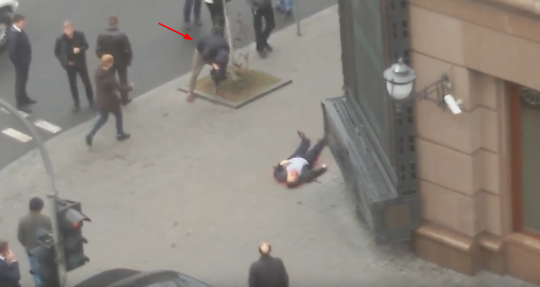 "Вот у кого должны быть уникальные кадры с места убийства Вороненкова! Обратите внимание, буквально на первых же минутах после выстрелов (раньше милиции) появляется оператор - судя по всему, с довольно хорошей камерой. Капюшон все это время не убирает.