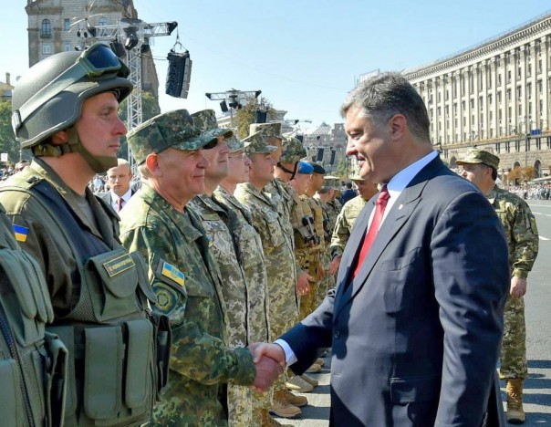 Порошенко в праздничной речи настойчиво предостерегает общество, армию и политический класс от противостояния, призывая оппозицию к цивилизованным отношениям и клеймя всех, кто недостаточно лоялен «пятой колонной». Причём речь здесь явно идёт не о пророссийской оппозиции. Идеологических противников режима никто не призывал к «цивилизованному диалогу». Они были сразу рассажены по тюрьмам или убиты, их политические партии были запрещены или вытеснены из активной политики. На них СБУ ведёт охоту до сих пор и никакие «выходы под залог» (как в ситуации с представляющим «официальную», разрешённую оппозицию журналистом Гужвой) или развал дела в суде здесь невозможен. Люди сидят годами без всякого суда. И так же без суда пропадают без вести.