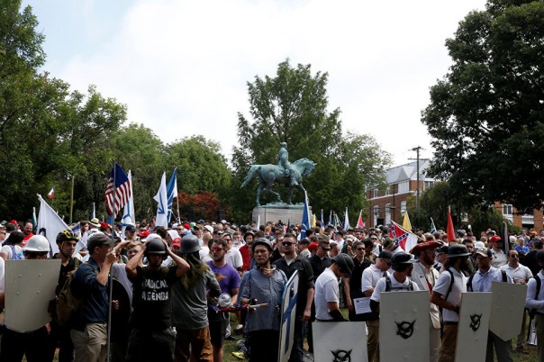 Ультраправые собираются возле памятника Роберту Ли во время протестов Шарлоттсвилле, штат Вирджиния