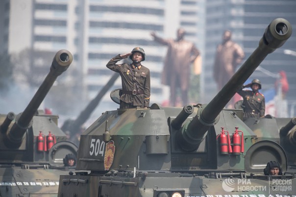 Военный парад в Пхеньяне. 15 апреля 2017