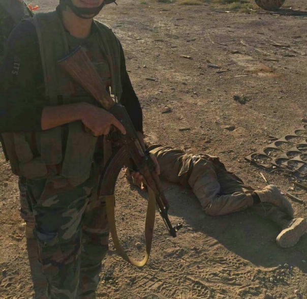 Ряд фотографий ниже были сделаны армейцами на месте уничтожения штурмовых групп ИГИЛ*, которые были уничтожены при попытке прорыва к позициям САА. По сообщению Национальных сил обороны САР часть фото сняты в пустынных районах Хамимы и Т-3 к югу от Дейр-эз-Зор.