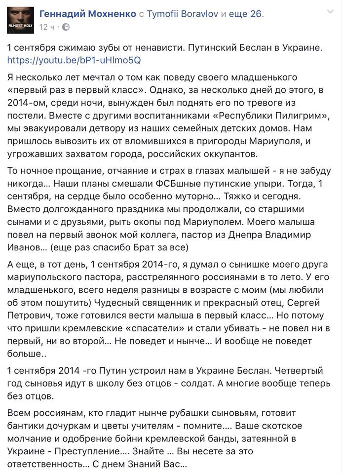 Скажу больше. Первое сентября в Мариуполе тоже было сорвано не случайно. Но не потому, что ВСУ в очередной раз активно демонстрировали всю полноту древней природы украинского лыцарства. Нет! Это Путину захотелось испортить детям праздник. Просто так. Чтобы подтвердить своё реноме Террана и вселить в души украинских детей ненависть к России и россиянам.