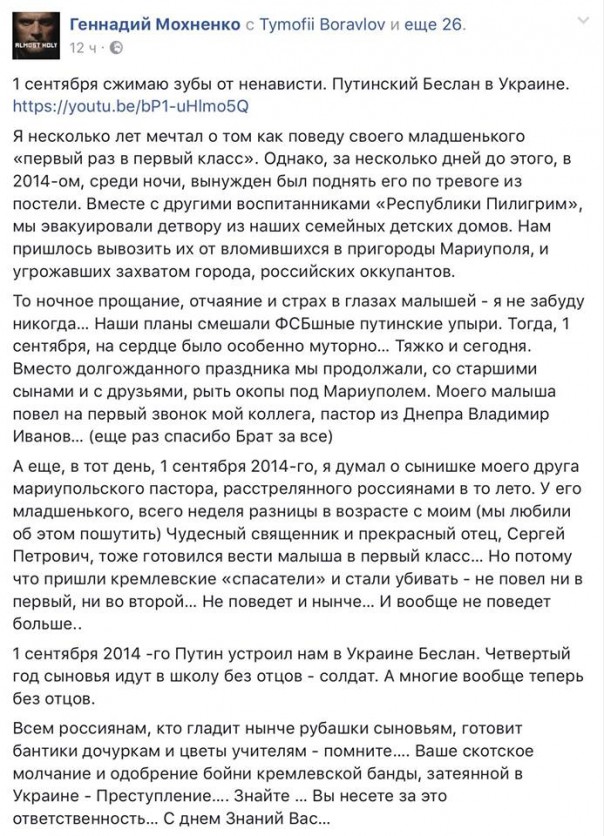 Вот и здесь. Праздник им сорвал Путин. И детей оставил сиротами Путин. И вообще во всем виноват Путин. И россияне.