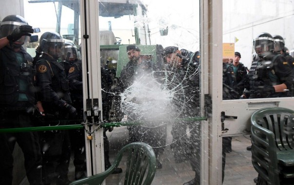 Также СМИ сообщают, что сотрудники полиции Испании начали силой освобождать школы и другие помещения, предназначенные для проведения голосования о независимости Каталонии. Сообщается о применении травматического оружия испанскими полицейскими.
