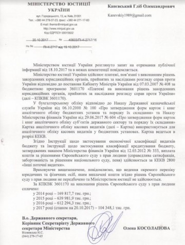 Как сообщило Министерство юстиции Украины, с начала 2014 года ведомство уплатило из казны более 1,5 млрд. гривен во исполнение решений Европейского суда. Судя по всему, эти средства были выделены на ход расследований и другие необходимые нужды, дабы разбирательство не встало «колом».