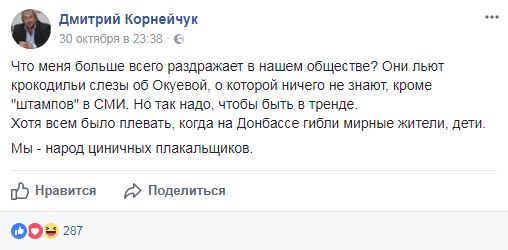 Насчет всеукраинской патриотической скорби по погибшей шмаре, хорошо отписал политолог Корнейчук: