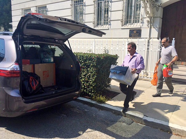 Вынос личных вещей дипломатов из здания российского консульства в Сан-Франциско
