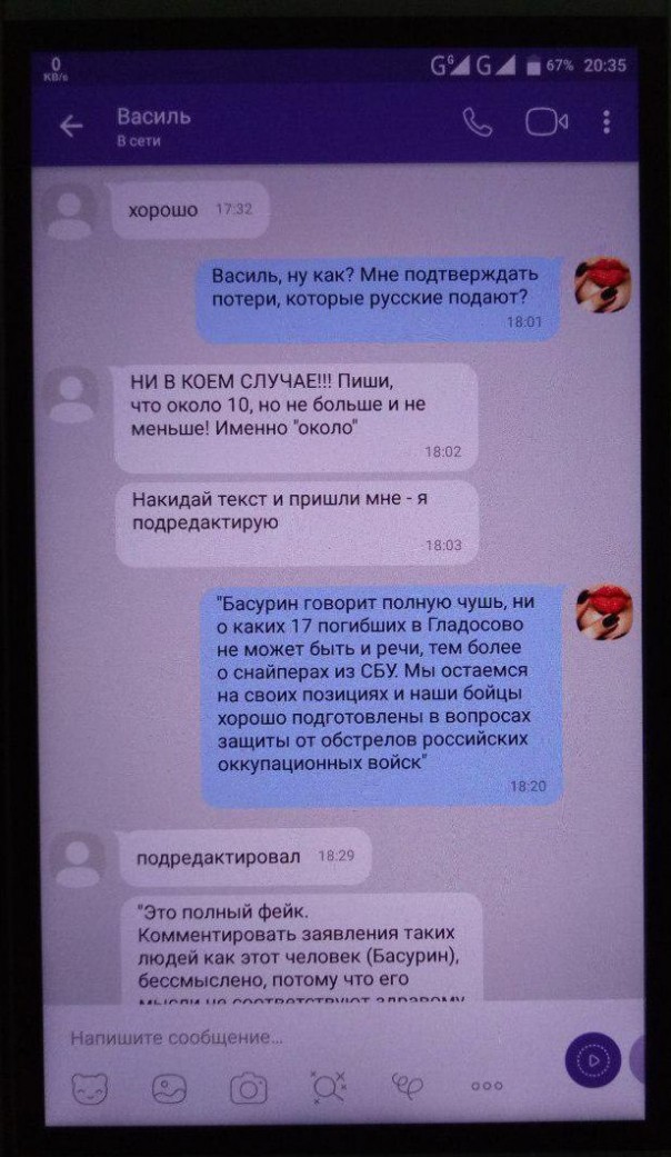 Сегодня от своего друга из Киева получил очень интересную информацию, которая подтверждает большие потери ВСУ под Горловкой. Этому человеку доверяю. Это вчерашняя переписка одной из журналисток информагентства «РБК-Украина» с офицером пресс-центра штаба «АТО» Василием Лабаем, в ходе которой обсуждается выпуск материала для опровержения заявления Эдуарда Александровича Басурина о больших потерях ВСУ в Гладосово и Металлисте. Ценность ее в том, что Лабай признает большие потери. Выводы делайте сами. Источник