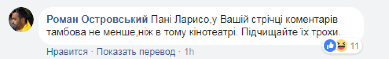 «Госпожа Лариса, в вашей ленте комментариев «Тамбова» не меньше, чем в кинотеатре. Подчищайте их немного», — советует Роман Островский.