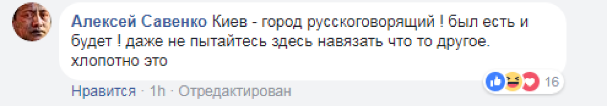 «Киев — город русскоговорящий! Был, есть и будет! даже не пытайтесь здесь навязать что-то другое. Хлопотно это», — отмечает Алексей Савенко.