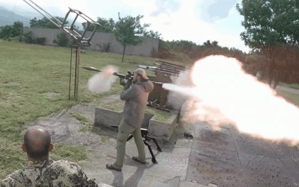 Норвилло испытывает РПГ на болгарском полигоне. Фото сделано одним из таких же контрактников. Фото: buzzfeed.com.