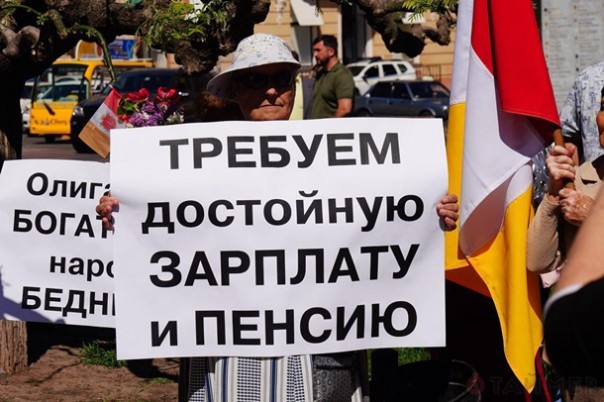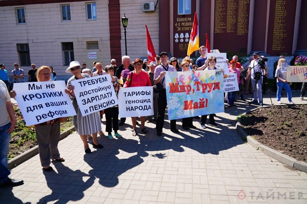 На митинг пришли в основном люди пожилого возраста. Они развернули плакаты о "геноциде Украины" и "славе трудящимся". Когда митингующие попытались достать флаг СССР, полиция предупредила их о криминальной ответственности и заставила убрать.