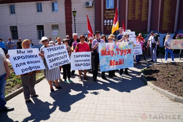 Около 150 митингующих пошли маршем от площади Конституции до сквера возле Благовещенской церкви.