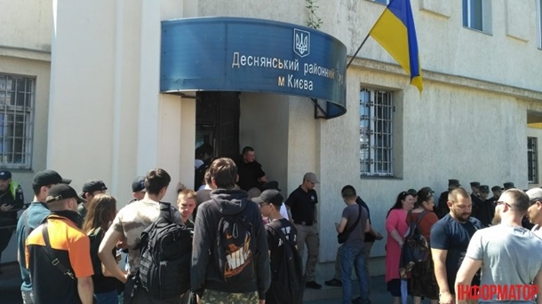 Возле здания Деснянского райсуда Киева, где избирает меру пресечения трем участникам погрома торговых рядов на рынке "Лесная", собралось около полторы сотни представителей националистических и радикальных организаций. Об этом сообщает Информатор.