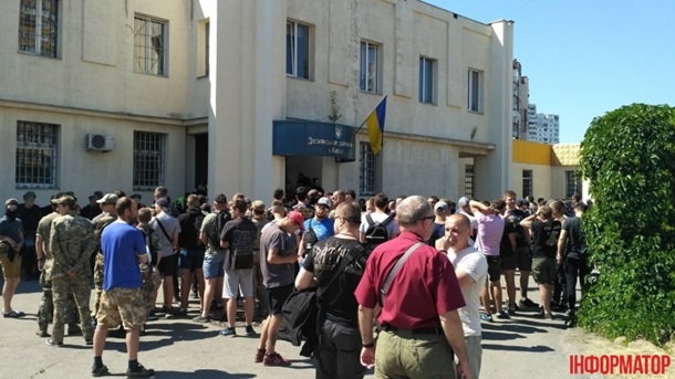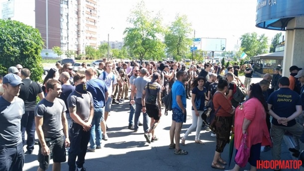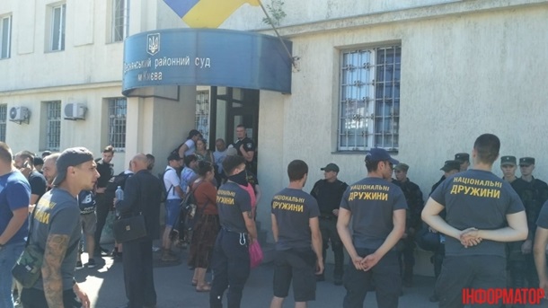 "Сейчас должен начаться суд над тремя участниками столкновений с полицией на столичном рынке "Лесная". У суда собрались националистические силы и обычные жители города в поддержку задержанных. Корреспондент насчитал около 150 человек, представляющих С14, Национальный корпус, Правый сектор, ОУН и атошники различных батальонов", - говорится в сообщении.