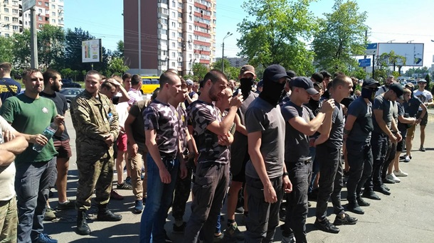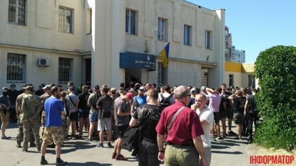 У здания суда собрались представители С14, Нацкорпуса, Правого сектора, ОУН и участники АТО.