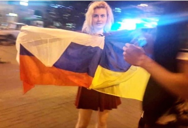 По словам одной из девушек, они не киевляне, а приехали из Херсона. Она добавила, что «русский мир» в Украине приветствуется везде.
