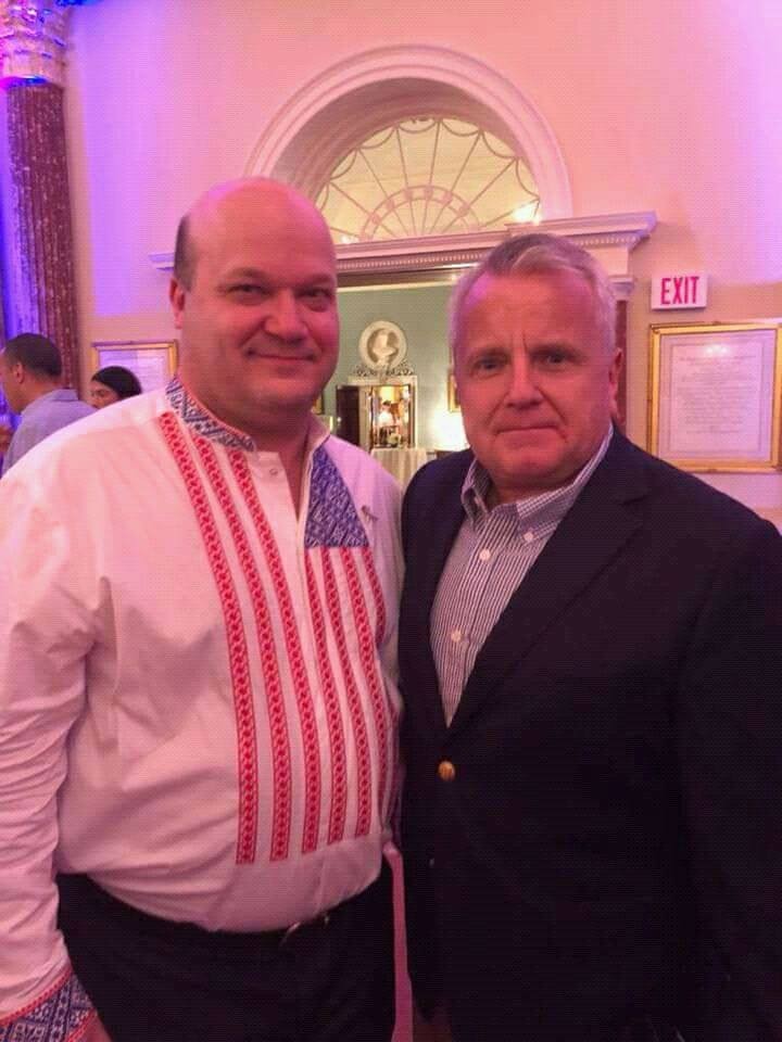 На фото - лысый дебил в вышиванке в форме американского флага - посол Украины на Дне Независимости США.