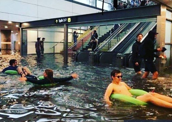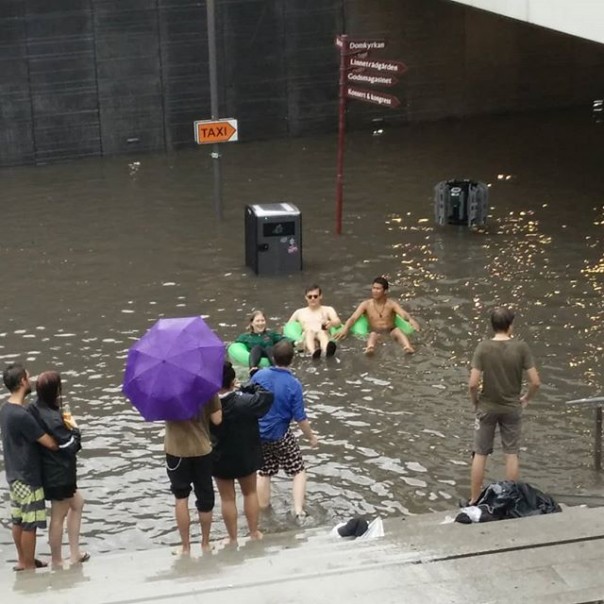 В шведском город Уппсала в результате обильных осадков затопило подземный переход центрального железнодорожного вокзала. А местные жители превратили его в бассейн. Фото и видео с водными развлечениями в переходе стали вирусными.