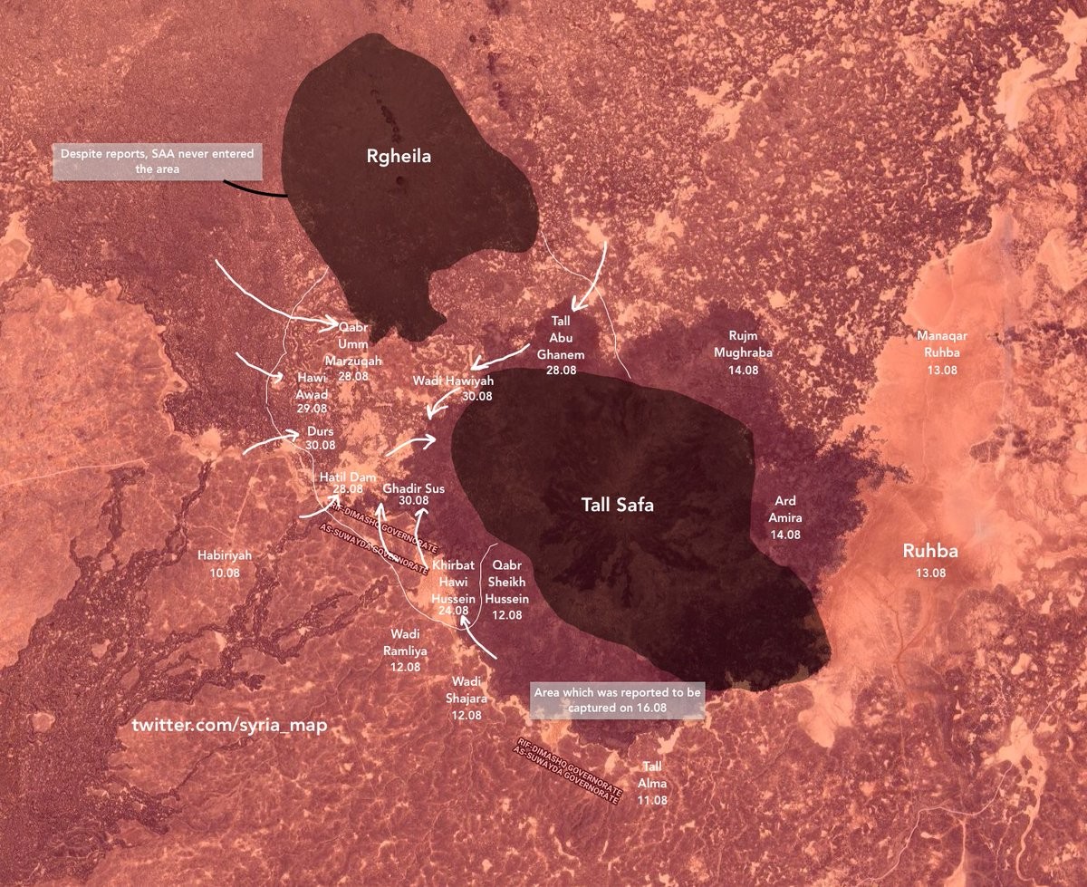 Сувейда. 1-я и 3-я дивизии САА при поддержке артиллерии и авиации, успешно продвигаются в регионе Аль-Сафа (Al-Safa).