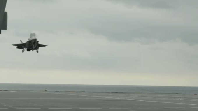 ВМС Соединенного Королевства опубликовали видео вертикальной посадки истребителя F-35В на авианосец «Королева Елизавета».