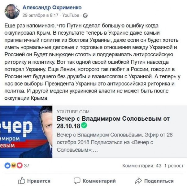 Что он заявил? Ошибка Путина: Кремль отобрал Крым и теперь Украина никогда не полюбит Россию и всегда будет русофобской и антирусской.
