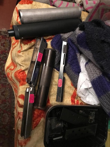 Во время обысков по месту жительства фигурантов дела сотрудники СБУ изъяли запчасти к короткоствольному огнестрельному оружию, в частности, пистолетные затворы, рамки, стволы и магазины.