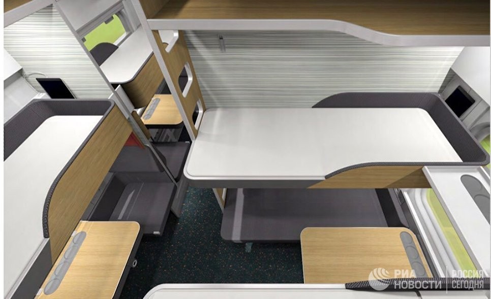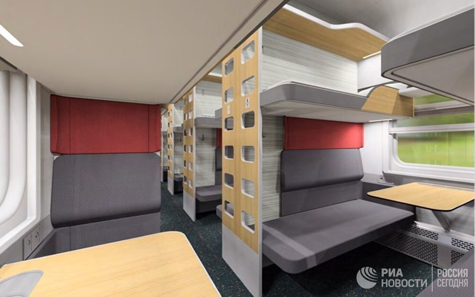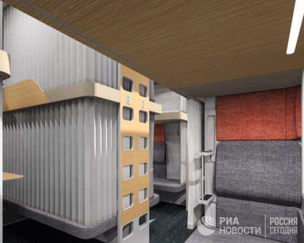 Согласно фотографиям, оказавшимся в распоряжении РИА Новости, новый плацкарт будет более комфортным для пассажиров. Модульные конструкции создают больше индивидуального пространства.