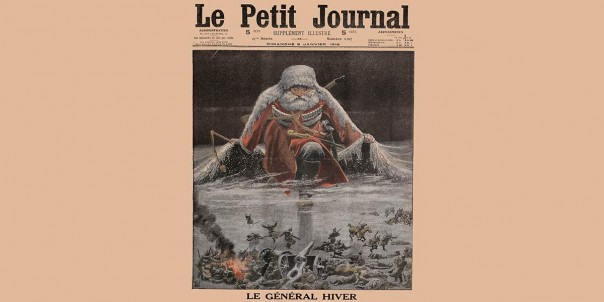 Французы выпустили карикатуру «Генерал Мороз». На ней Генерал в образе покрытого снегом огромного казака в черкеске конвоя русского императора поднимает на бой с Германией ледяную стихию. Замерзающие немецкие солдаты, которых не спасают костры, в ужасе бегут от смертельного холода.