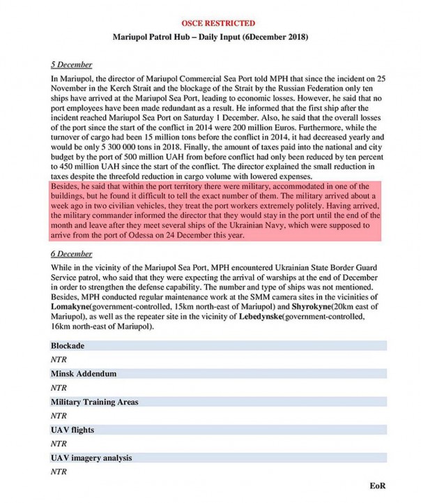 «…5 декабря MП встретился с директором Мариупольского морского торгового порта, который сообщил, что с момента инцидента, произошедшего 25 ноября в Керченском проливе, только десять судов прибыли в Мариупольский морской порт, что привело к экономическим потерям…