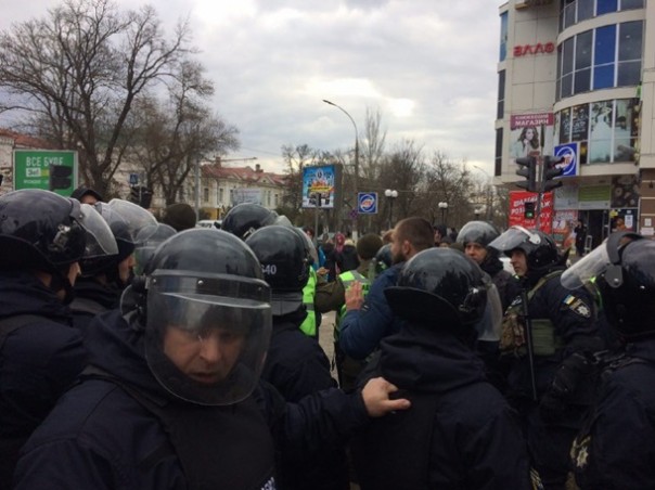 Как сообщил начальник Херсонского отдела полиции полковник Александр Говорун, во время столкновений задержали двух человек.