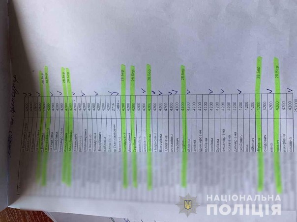 По приезду на место события следственно-оперативной группы и предметного обзора сотрудники полиции выявили крупные суммы денежных средств, большей частью номиналом по 500 грн, а также документацию с персональными данными граждан, в частности, списки граждан, напротив фамилии которых значились суммы денежных средств в эквиваленте от 2 до 4,5 тыс грн.