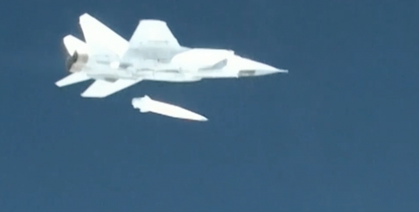 Демонстрация испытания авиационного ракетного комплекса "Кинжал" во время трансляции послания президента Российской Федерации Владимира Путина Федеральному собранию