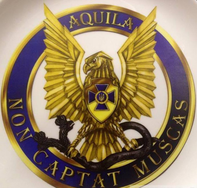 Судя по всему сам орел - это СБУ, змей двуглавый - это Россия или возможно сам Путин о двух головках, а девиз из трактования Ватикана. Сегодня его понимают так, мол, великий человек не занимается мелочными делами, он игнорирует все мелочное и ничтожное. Я вынужден расстроить мастеров комикс-жанра, создавших эту белиберду и пояснить, что у них очередная "зрада", причем в рядах секретнейшей службы страны неугасимых мечтаний.