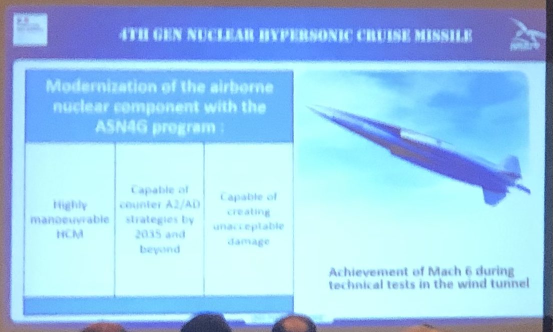 На слайде демонстрируется проект французской ядерной гиперзвуковой крылатой ракеты, которую планируются довести до серийного производства и постановки на вооружение к 2035 году.