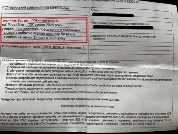 Как сообщил сам активист в соцсетях, ему уже пришла повестка с требованием явиться в Днепропетровский районный суд Киева.
