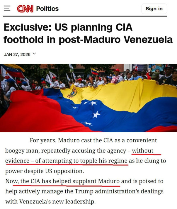 Но теперь, когда с помощью ЦРУ Мадуро удалось устранить, управление налаживает активное взаимодействие администрации Трампа с новым руководством Венесуэлы."