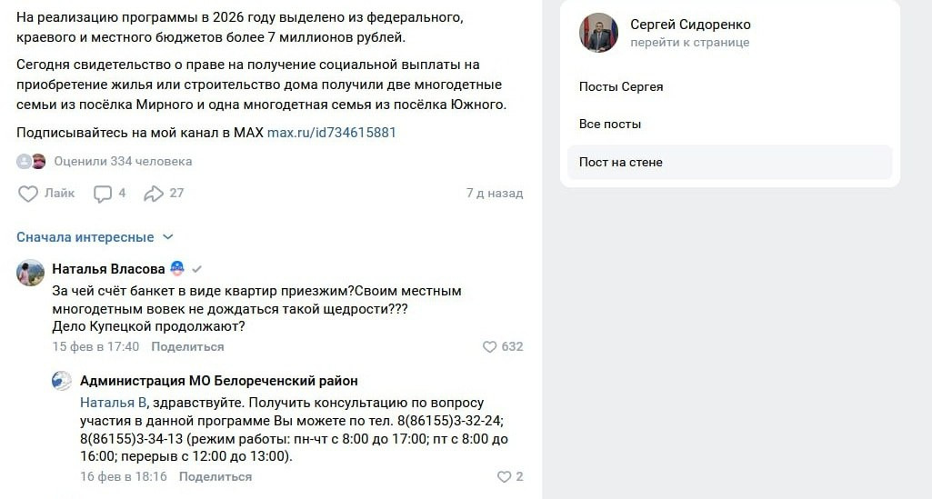 Этот же вопрос жители Белореченского района начали наперебой задавать Сергею Сидоренко. Но через некоторое время глава района отключил комментарии под постом. А еще чуть позже тг-канал "Многонационал" сообщил: