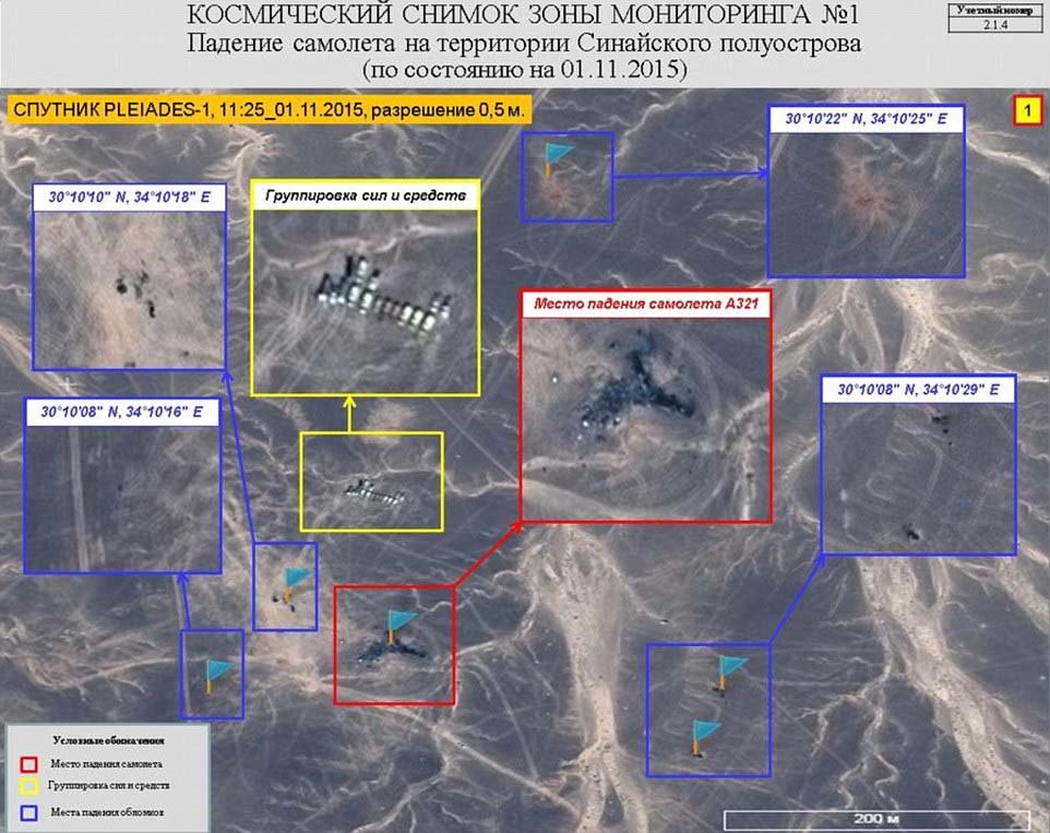 17:25 - Спасатели на месте крушения A321 получили космический снимок зоны ЧС.