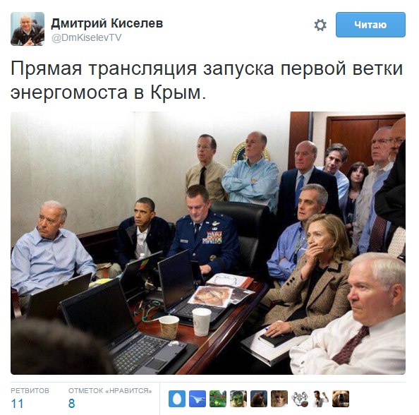 Сторонники Майдана наперегонки бросились убеждать друг друга, что показанное по ТВ — фейк, и никакого электричества в Крыму не появилось.