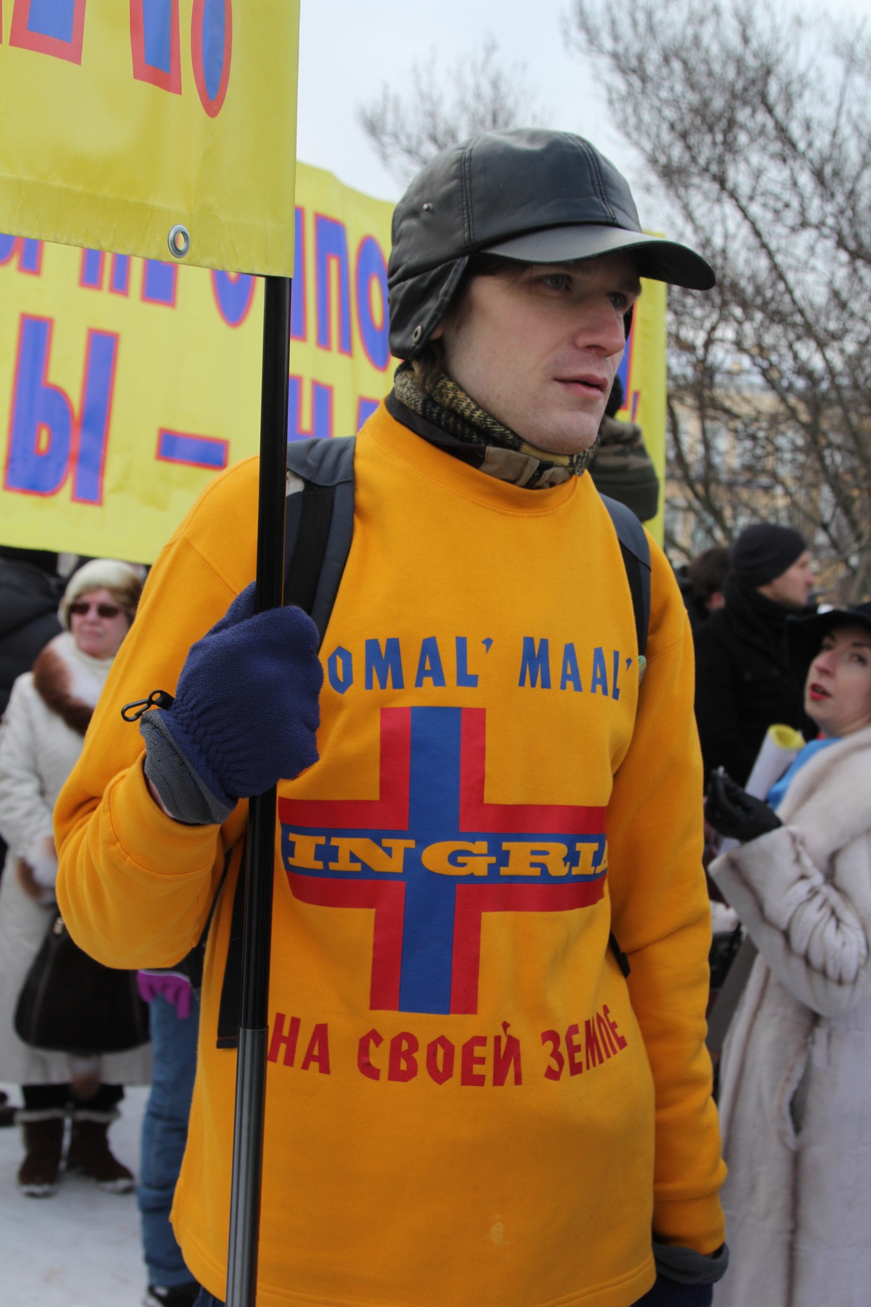 1. Тут же стоят нелюди в сине-желтыми лентами и флагами