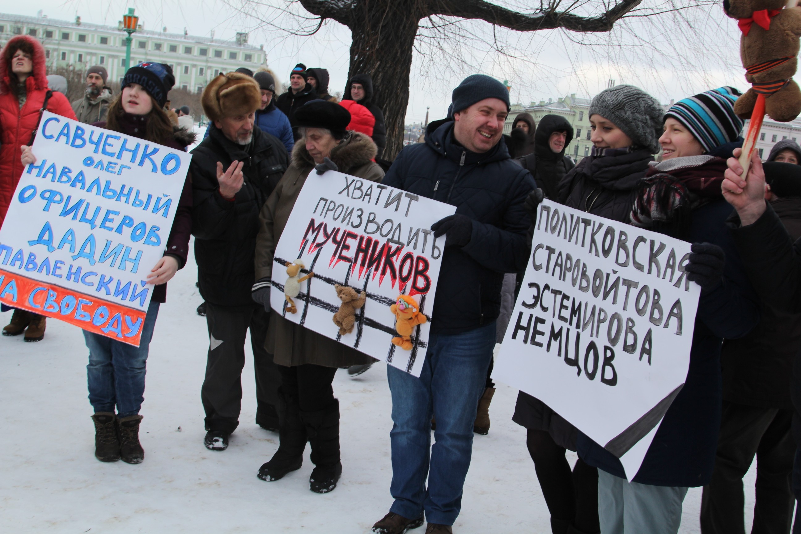 5. Радостно улыбающиеся люди с ватманами, написанными от руки (очевидно, думают, что они на празднике). А как же многоуважаемый покойный Немцов, к которому вы все пришли?!