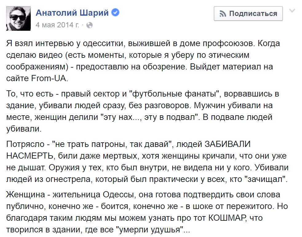 То, что сделали "патриоты" Украины 2 мая 2014 в Одессе в доме профсоюзов - невозможно описать словами...