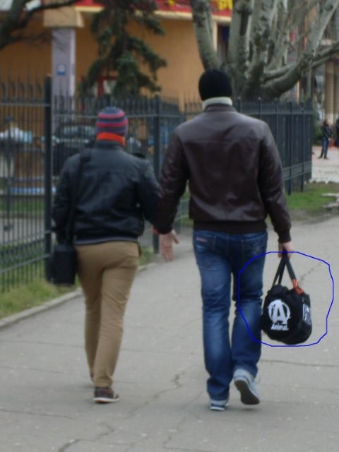 Тут она обращает внимание на сумку прохожего с георгиевской лентой. Злится ещё сильнее.