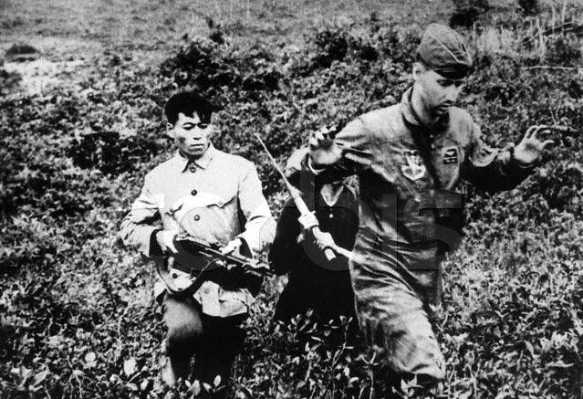 Вьетнамский солдат конвоирует военного преступника Джона Маккейна, сбитого при налёте USAF на жилые кварталы Ханоя