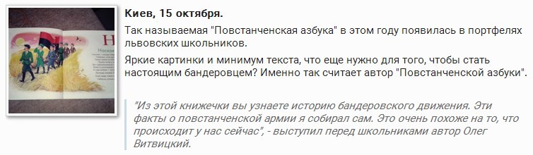 Изданы учебники на деньги депутатов Львовщины, они даже помогли автору провести параллели с сегодняшним днём. Так в "Повстанченской азбуке" и появились главы о "небесной сотне" и Донбассе.