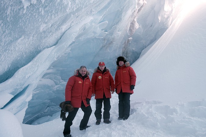 Президент России Владимир Путин, премьер-министр Дмитрий Медведев и министр обороны Сергей Шойгу побывали в загадочной, охраняемой, ледяной пещере на острове Земля Александры архипелага Земля Франца Иосифа в Арктике.